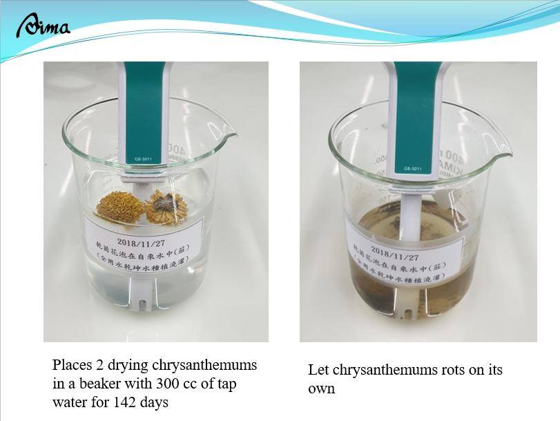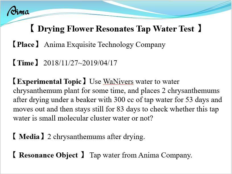 Two drying florist’s daisy flowers resonates tap water NMR test result :
